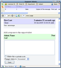 The bottom half of the window is where you can reply to the ticket. You can type your message into the box provided, check make this a private node if you would like to add a note to the ticket that the customer will not be able to view and select a new status for the ticket. Then, click on the Save button to save the message to the server and send an email to the customer indicating their support ticket has been responded to.