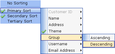 Table windows can be sorted by up to three levels by clicking on the headers to bring up the sort menu shown below: